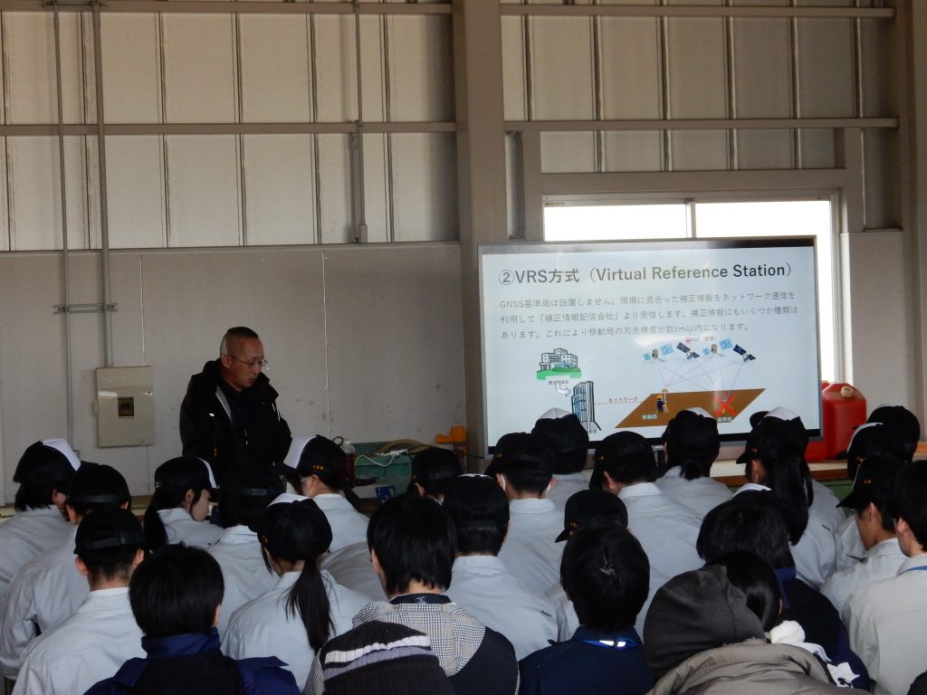 学校生活 ICT施工研修を行いました!(環境デザイン系列) 2025年12月11日 12月10日(水)環境デザイン系列2年生を対象に外部講師を招き、ICT施工研修を行いました。土木、建設分野でのICT機器の活用事例や現物に触ったり、人工衛星からの情報を基に測点を探したりと生徒も普段見たことのない機械に触れ、とても興味深々でした。