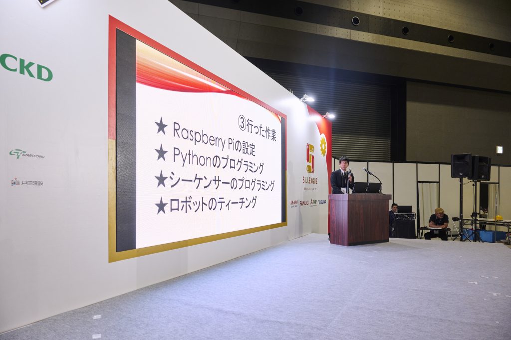 大会当日は多くのお客さんに「おみくじ点字ロボット」を体験していただき、楽しんでいただきました。エキシビジョン部門で行われた来場者投票では、途中まで1位をキープするほどでした。最後は惜しくも1位を逃してしまいましたが、生徒がこの1年間で身に付けた技術・技能を活かして、これからの社会で活躍してくれることを願っています。