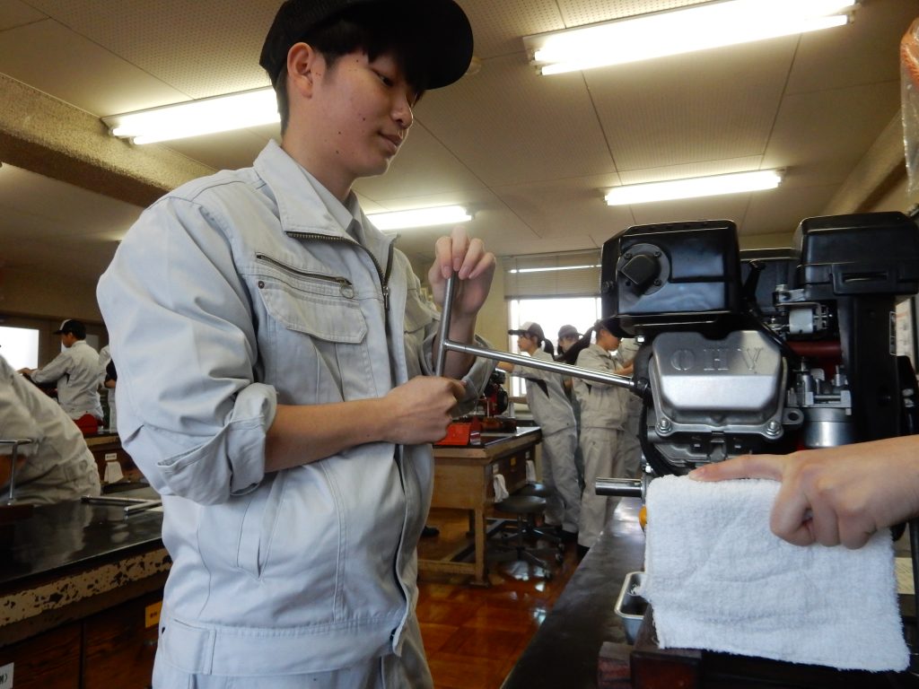 1/21(水)~1/23(金)の3日間、安城市にある愛知県総合教育センター農業教育共同実習所において、エンジン分解・組立実習やトラクター・施工機械実習を行ってきました。最初は緊張していましたが、最後は「楽しかった!」や「面白かった!」などの声が挙がり、楽しい実習となりました。