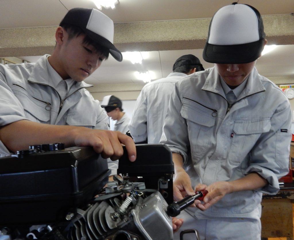 エンジン分解・組立実習と共同生活の様子